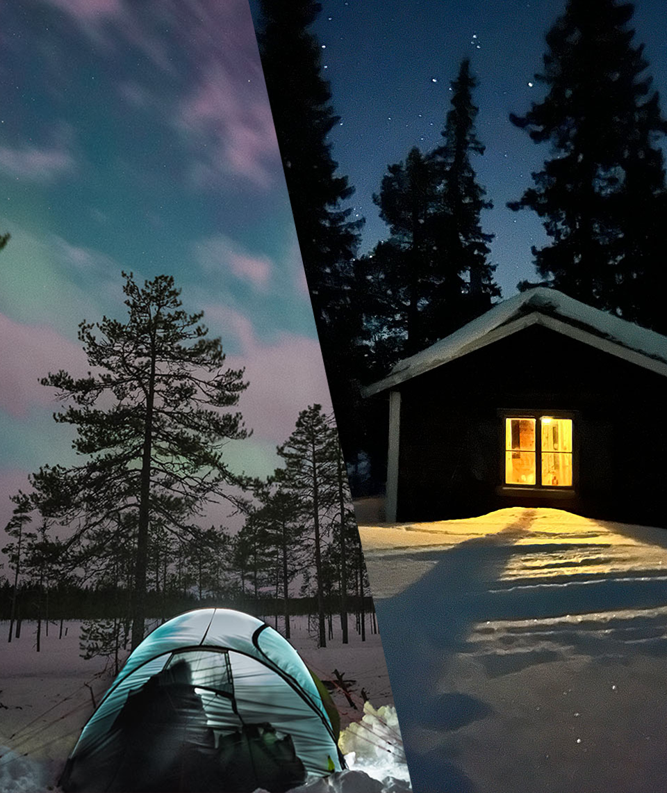 On our winter husky tours, youâll sleep in rustic wilderness cabins or warm expedition tents. Thereâs no closer way to experience Laplandâs silence and magic than out on the trail.